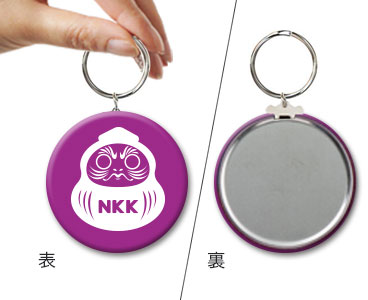 缶キーホルダーは最小ロット50個。単価172円から作成可能です。最安単価は104円。サイズは25mm・32mm・44mm・57mmからお選びいただけます。