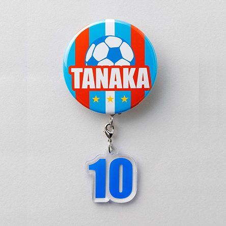 連結アクキー缶バッジ、連結アクキーはアクリルキーホルダーと缶バッジが1つになったアイテムです。缶バッジのサイズは57mm、アクキー部分は3cm~7cm以内で両面印刷に対応します。