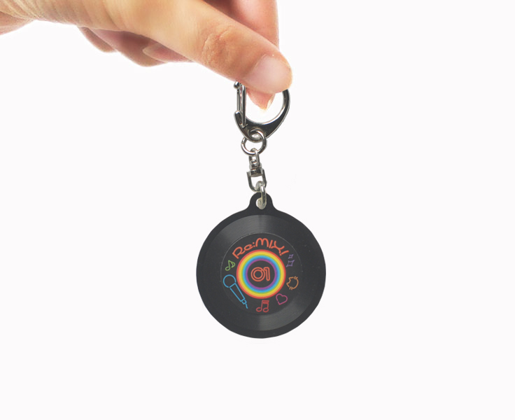 キーホルダー×スタンド×安全ピンがついた3WEY仕様。ジャケット、帽子、バッグなどに着けたり、机に飾ったりと、楽しみ方が自由自在なレコードキーホルダーです。